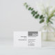 The text elements are arranged in two columns arranged right and left around a centre aligned space. The design can accommodate most normal business card entries, however excessively long text lines are best avoided in order to maintain the balance of the design. The reverse of the card has been left blank, which can be useful for jotting notes or can be further customised.