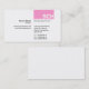 The text elements are arranged in two columns arranged right and left around a centre aligned space. The design can accommodate most normal business card entries, however excessively long text lines are best avoided in order to maintain the balance of the design. The reverse of the card has been left blank, which can be useful for jotting notes or can be further customised.