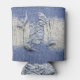 Torn blue denim: jeans texture. can cooler