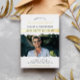 Gold foil life celebration invitation, featuring a photo of your loved one and a tasteful typography in a combination of black and gold foil against a white background. Photo funeral invitation with text in black and gold foil. Elegant memorial service invitation in black, white, and gold personalised with a photo of your loved one.