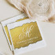A fun yet unique set of wedding napkins featuring an elegant Faux Gold texture with the information of the bride and groom and a last name monogram. The napkins feature a torn out printed look.