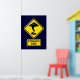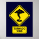 Tornado Xing - dark blue poster with a humorous warning sign style design in yellow and black.