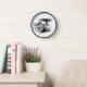 I received this as a birthday gift from my husband to replace a clock that had broken. It was perfect, pictures of my sweet family to see at every hour of the day. The size of the pictures looks nice for the size of the clock and I love looking at it! The only downside is there is no cover for the battery on the back, which makes me nervous having little kids running around the house, but an easy fix with some tape. The printing turned out clear, considering they were all cell phone pictures. Some of them look slightly grainy upon getting close up. But so nice overall!
