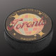 Toronto Canada City, Retro Vintage Design featuring a disco ball in light brown, pink, and light blue hues. This beautiful hockey puck is a perfect gift for Toronto Canada City hockey players, clubs or teams.