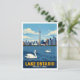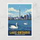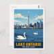 Send a piece of modern and classic Canadian art with this postcard! Inspired by mid-century travel posters, this design showcases the iconic Toronto skyline, including the CN Tower, viewed from Lake Ontario. The graceful swans in the foreground add a touch of natural beauty to the Great Lakes city. A perfect souvenir for city lovers and fans of clean, retro design.