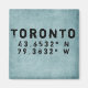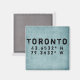 Toronto longitude and latitude coordinates in distressed fonts on an aged denim background give this magnet a modern urban look