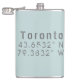 Toronto longitude and latitude coordinates in distressed fonts give this a modern urban look