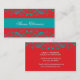 Torquoise & Vermillion Damask Business Card