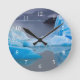 The clock did not take as long to arrive as I thought it might and was extremely well packaged. I didn't do the measurements so I didn't realize it is a little smaller than the average clock but that does not matter (just make sure you check if that's important to you).It is really nifty! It seems very solid and well made not flimsy at all. It has been going well and has kept good time in its few weeks on my wall. Nice product. Gets noticed too! Nicer in real life than the picture but true to the picture