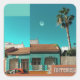 A colourful photo of a Spanish town with a traditional building, a crescent moon and a palm tree. Valencia, Alicante.