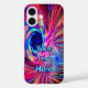 A bright, multi-coloured (red, purple, blue) looping, rotational fractal image. Customise by adding your own text.