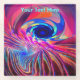 A bright, multi-coloured (red, purple, blue) looping, rotational fractal image. Customise by adding your own text.