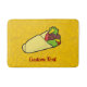 Cartoon illustration of tortilla sandwich wrap. Junk food outline icons yellow pattern background. Custom text.