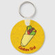 Cartoon illustration of tortilla sandwich wrap. Seamless yellow fast food background. Custom text on both sides.