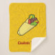 Cartoon illustration of tortilla sandwich wrap. Junk food outline icons yellow pattern background. Custom text.
