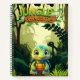 Personalise the back cover of this adorable "Jungle Welcome" notebook! Featuring a unique whimsical baby box turtle cartoon graphic animal character in a lush dusk forest scene, inviting you into a world of imagination and creativity. This design is perfect for tortoise lovers, safari woodland, nature wildlife fans, and anyone who enjoys cute, cosy zoo vibes.