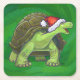 Tortoise in Santa Hat On Green Square Paper Coaster