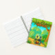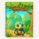Personalise the back cover of this adorable "Jungle Welcome" notebook! Featuring a unique whimsical baby box turtle cartoon graphic animal character in a lush forest scene, inviting you into a world of imagination and creativity. This design is perfect for tortoise lovers, safari woodland, nature wildlife fans, and anyone who enjoys cute, cosy zoo vibes.