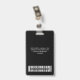 Easily personalise these business name badges without photo, with readable Qr Code (it always works!) and Bar Code and large business logo. This company id maker has a simple business name tag design in total black and white colours fully customisable in front and back sizes, sans-serif basic and modern fonts and a professional and clear look, perfect for small business employee, boss, guests. These business id badges supplies are avaiable with lanyard, metal clip or with retractable. Enjoy excellent Zazzle's badge printing service! No minimum order, and the more you buy, the more you save. Bulk discounts are avaiable with multiple orders, for different employees too!