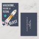 This cool Valentine's Day card features a rocket in space with the words, "Valentine, you're a total blast". Stars and the Earth are in the background, while blue and pink hearts pepper the rocket's smoke. This card is great for kids who need to bring Valentines into the classroom. The back includes customisable text where you can add your child's name. Check out the collection for four more space-themed classroom cards.