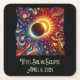 Total Eclipse 2024 Retro Groovy 60's 70's vibe Square Paper Coaster