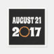 Total Solar Eclipse August 21 2017 text design with sun decoration. The total solar eclipse will be visible from a narrow path spanning all across the USA from the West Coast to the East Coast on August 21, 2017.