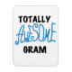 Totally Awesome Gram mugs, gram keepsakes, cards, buttons, stickers, and more for the totally awesome grandmother or gram to be with bright blue text with black or white text for light and dark colours t-shirts and gifts