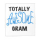 Totally Awesome Gram mugs, gram keepsakes, cards, buttons, stickers, and more for the totally awesome grandmother or gram to be with bright blue text with black or white text for light and dark colours t-shirts and gifts