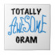 Totally Awesome Gram mugs, gram keepsakes, cards, buttons, stickers, and more for the totally awesome grandmother or gram to be with bright blue text with black or white text for light and dark colours t-shirts and gifts