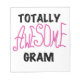 Totally Awesome Gram mugs, gram keepsakes, cards, buttons, stickers, and more for the totally awesome grandmother or gram to be with bright pink text with black or white text for light and dark colours t-shirts and gifts