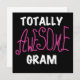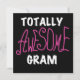 Totally Awesome Gram T-shirts, hoodies, mugs, gram keepsakes, cards, buttons, stickers, and more for the totally awesome grandmother or gram to be with bright pink text with black or white text for light and dark colours t-shirts and gifts
