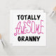 Totally Awesome Granny T-shirts, hoodies, mugs, granny keepsakes, cards, buttons, stickers, and more for the totally awesome grandmother or granny to be with bright pink text with black or white text for light and dark colours t-shirts and gifts.