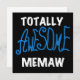 Totally Awesome Memaw T-shirts, hoodies, mugs, gammie keepsakes, cards, buttons, stickers, and more for the totally awesome grandmother or memaw to be with bright blue text with black or white text for light and dark colours t-shirts and gifts.