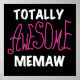 Totally Awesome Memaw T-shirts, hoodies, mugs, gammie keepsakes, cards, buttons, stickers, and more for the totally awesome grandmother or memaw to be with bright blue text with black or white text for light and dark colours t-shirts and gifts.