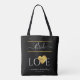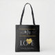 Bride | Mrs. Love text with a Gold Heart and date. Monogrammed names Wedding totes for the bridal party