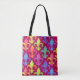 This Mardi Gras tote bag features a pattern of watercolor rainbow fleur de lis on a pink background. Designed by world renowned artist ©Tim Coffey.