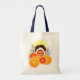 This tote bag design features a graceful woman surrounded by fresh tangerines and soft lavender flowers, symbolizing beauty and calm. Perfect for beauty shoppers, it combines elegance with a natural, refreshing feel.