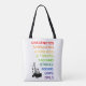 Flaunt your love of bagpipes with this bright and bold tote bag featuring a fun list of bagpiping’s unique embellishments.