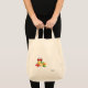 The printing came out very well, better than I had anticipated. The natural color fabric is sturdy with strong seams and comfortable handles. This tote fits easily over my shoulder. As it is filled, the bottom flattens out--very cool! I would buy this product again. This grocery tote holds a lot of groceries! The image quality was very good. The colors were a little darker than I had expected. The darkness may have been due to printing on a natural color fabric rather than on white. The cat design is attractively centered on the tote. The spirit of the design is very lively, just as it appears on the Zazzle website.