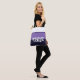 This cute stylish medium size tote bag is shown in purple, lavender and white with a thin black stripe and handles in a striped colour block with the special text Vegas.