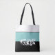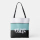 This cute stylish medium size tote bag is shown in aqua, white and black colour block with the special text Vegas.