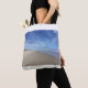 A Tote Bag With Atlantic Ocean Low-Tide Sandy Beach Photos on each side. One side views north, and the other aims south.