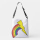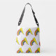 Tote your stuff in style with a cute cross body bag or shoulder tote featuring a repeating pattern of colourful rainbows emerging from bright yellow lightning bolts on one side and a single lightning bolt with rainbow on the other side. Original artwork by Buttercup's Clothing and Collectables.