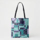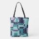Tote your stuff in style with a cute cross body bag or shoulder tote featuring a fun abstract pattern of cubes and crackles in shades of green , purple , black , grey, and white Original artwork by Buttercup's Clothing and Collectables.