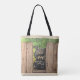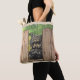 Tote with cute dog peeking between fence slats bag