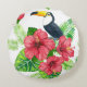 Tropical bouquet with toucan is made of separately painted elements, seamless pattern made in Illustrator.