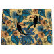 tropical seamless pattern with tropical leaves and flowers and 2 toucan birds.
