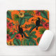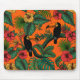 tropical seamless pattern with tropical leaves and flowers and 2 toucan birds.