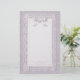 Sweet stationery features pretty damask background with lace edged overlay and pretty bow accent in pastel lavender tones.