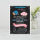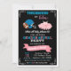 This "Touchdowns or Tutus" gender reveal party invitation is set against a black faux chalkboard background to make the pink and blue colours pop. Decorated with a blue football helmet and football and a pink twirly tutu it's sure to delight your guests.